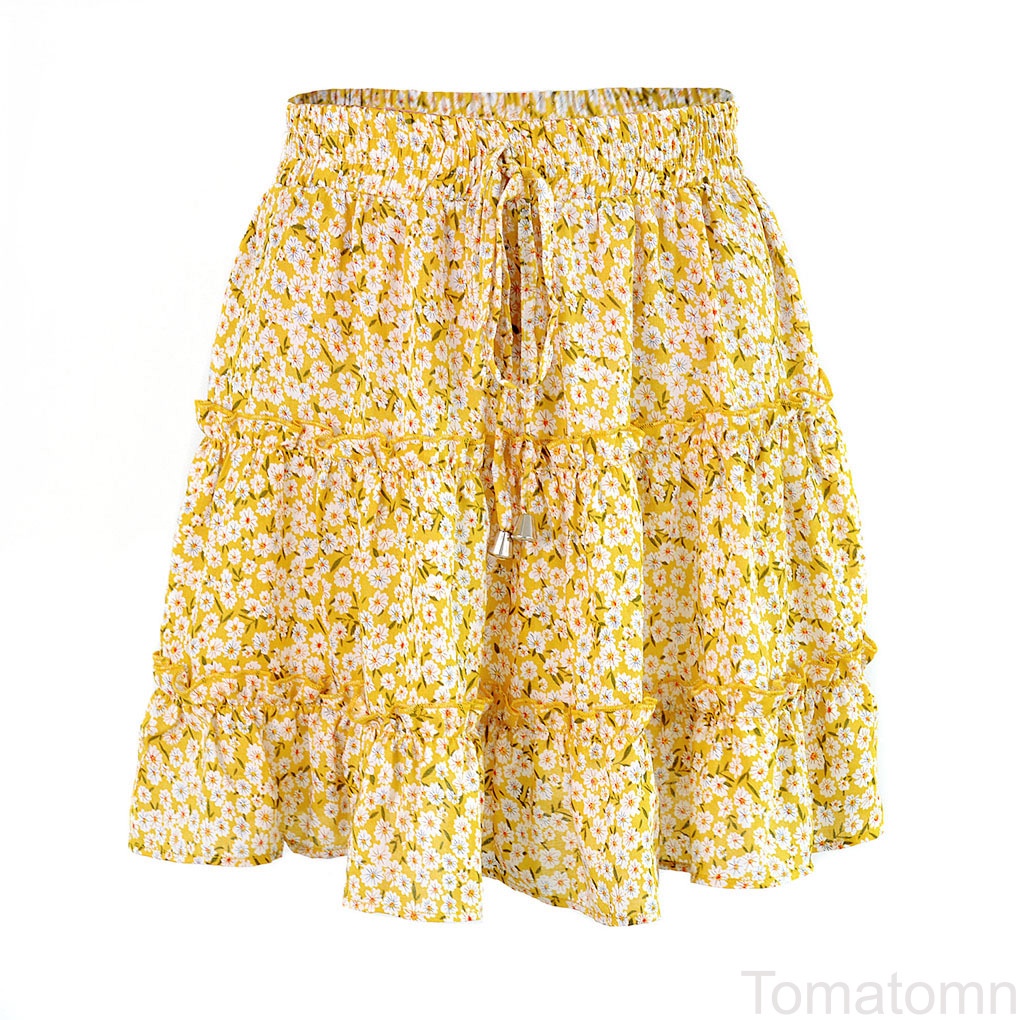 Yellow Floral Tie Waist Mini Skirt This product is sized normally.